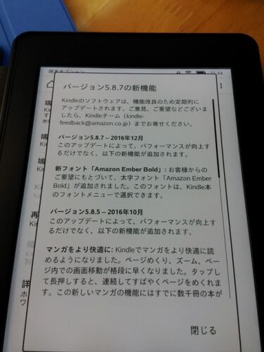 久しぶりにKindleの設定画面を開いてみると以前と表示が変わっていました。 いつの間にかにアップデートしたのかと思い、本体情報から新機能を表示してみると、去年の10月… 気になって最新バージョンがいくつなのかを調べてみると去年の12月にも更新されてい…